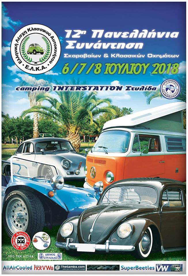 Η Ελληνική Λέσχη Κλασσικού Αυτοκινήτου πιστή στο ετήσιο ραντεβού της ανακοινώνει την διεξαγωγή της “12ης Πανελλήνιας Συνάντησης Σκαραβαίων & Κλασσικών Οχημάτων” 6/7/8 Ιουλίου 2018.