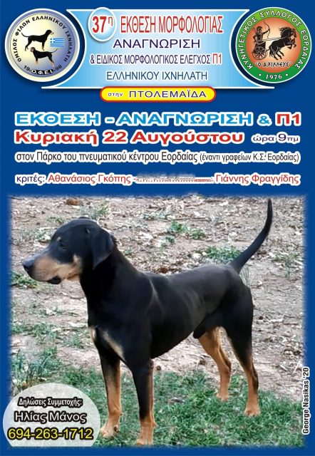 Στην Πτολεμαΐδα λοιπόν, θα διεξαχθεί έκθεση, αναγνώριση και ειδικός μορφολογικός έλεγχος Π1, στις 22 Αυγούστου 2021, ημέρα Κυριακή. Σε συνεργασία ξανά με τον Κ.Σ. Εορδαίας θα πραγματοποιήσουμε και φέτος άλλη μια διοργάνωση. Οι συμμετοχές θα δηλώνονται έως και την πέμπτη 19 Αυγούστου 2021, στο μέλος του συμβουλίου Μάνο Ηλία στο τηλέφωνο που αναγράφεται στην αφίσα.