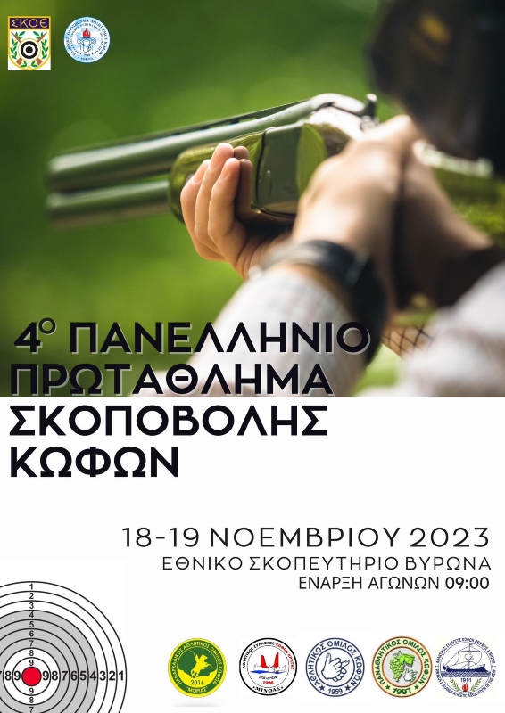 Mε τη συμμετοχή 5 σωματείων (Αθλητικός Σύλλογος Κωφών Κρήτης «Μινωας», Παναρκαδικός Αθλητικός Όμιλος Κωφών «Μοριας», Παναθλητικός Όμιλος Κωφών (ΠΟΚ), Αθλητικός Όμιλος Κωφών (ΑΟΚ) και Αθλητικός Σύλλογος Κωφών Πειραιώς &Νήσων) με 9 αθλητές (5 άνδρες και 4 γυναίκες) θα διεξαχθεί το Σάββατο (18/11) και την Κυριακή (19/11), το 4ο Πανελλήνιο Πρωτάθλημα Σκοποβολής, στο Εθνικό Σκοπευτήριο Βύρωνα, με ώρα έναρξης 9:00.