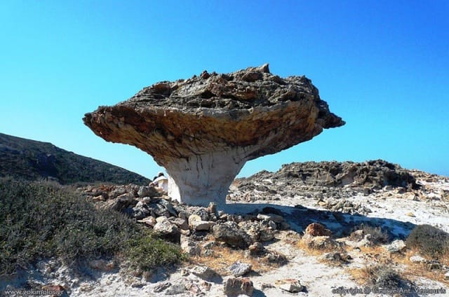 Το νησί της κιμωλίας είναι ηφαιστειογενές με μοναδική ποικιλία πετρωμάτων και με κύριο χαρακτηριστικό τους το άσπρο χρώμα, την «κιμώλια γη».