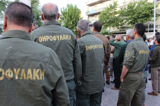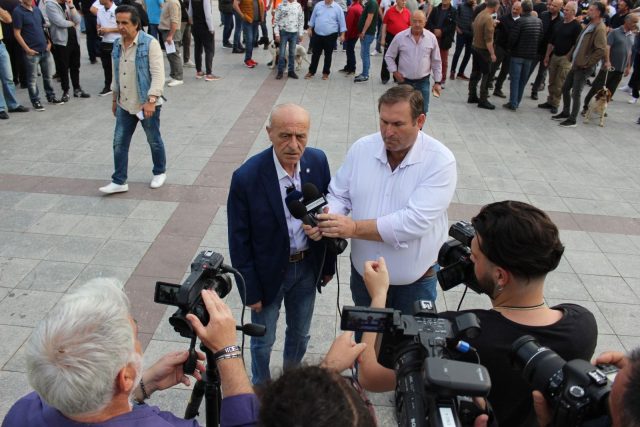 Παρόντες πρόεδροι και θηροφύλακες, καθώς και κυνηγοί με τα παιδιά τους και τους κυνηγετικούς τους σκύλους. Όλοι ενάντια στο απαγορευτικό νομοσχέδιο!