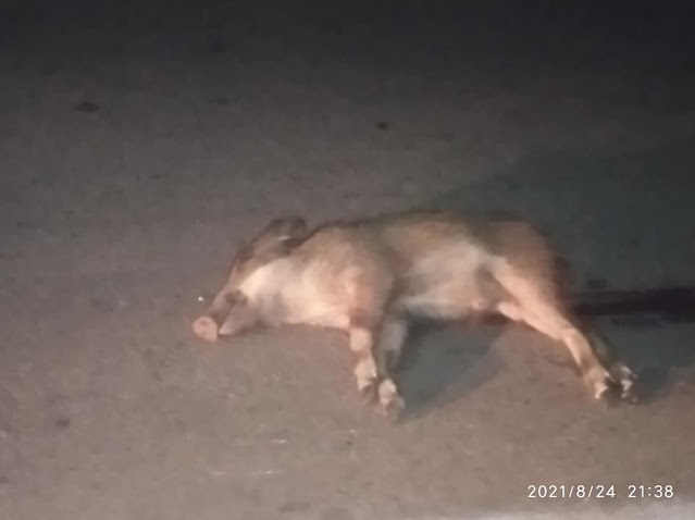 Αγροτικό αυτοκίνητο τύπου Nissan Navara συγκρούστηκε με αγριογούρουνο. Ο οδηγός του αγροτικού προσπάθησε να αποφύγει το κοπάδι που διέσχιζε το δρόμο το οποίο αποτελούνταν από 10 αγριογούρουνα.