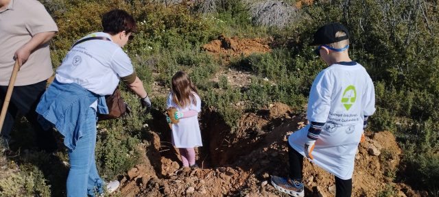 Μικροί και μεγάλοι ευχαριστήθηκαν την επαφή με τη φύση, αφού βοήθησε πολύ και ο καιρός και κατά τη διάρκειας της δράσης μοιράστηκαν νερό και σνακ.
