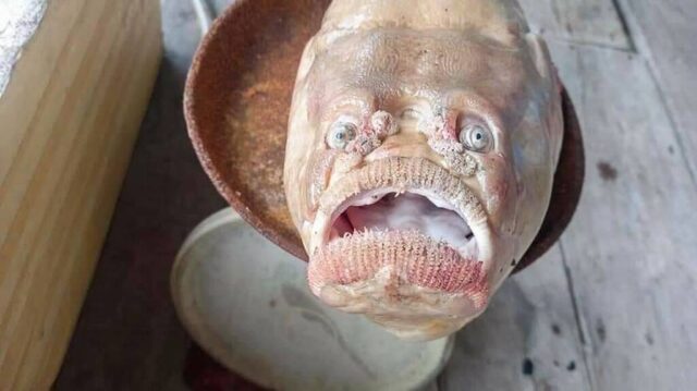 Είχε μεγάλα χείλη και γουρλωτά μάτια, με τον ψαρά να λέει: «Έμοιαζε με ένα άσχημο συνοφρυωμένο άτομο».