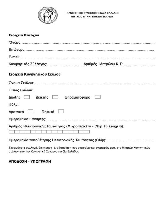 Όπως γνωρίζετε, η Κ.Σ.Ε. έχει ήδη οργανώσει τη δημιουργία ξεχωριστού ηλεκτρονικού ΜΗΤΡΩΟΥ για τους ενεργούς κυνηγετικούς σκύλους, μέσω της εφαρμογής «ΚΕΝΤΑΥΡΟΣ», που διανέμει κάθε χρόνο δωρεάν στους κυνηγούς.