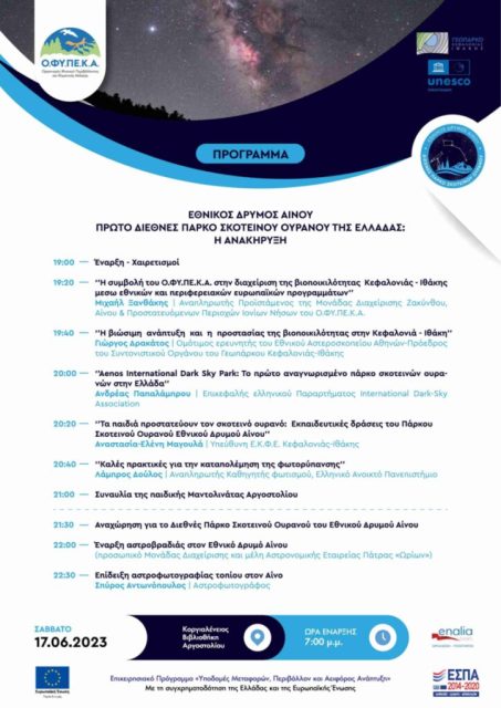 Ημερίδα στον Εθνικό Δρυμό Αίνου, ως πρώτο διεθνές πάρκο σκοτεινού ουρανού