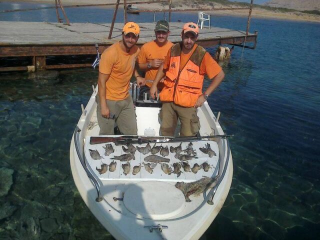 Κυκλώνουμε σιγά σιγά με πορεία προς το πευκωτό και εν συνεχεία τη βάρκα. Ότι μας είπε ο Σπύρος βγήκε, χτυπήσαμε άλλα 4 τρυγόνια στα πεύκα, πλέον έχουμε γράψει νούμερο, έχουμε κάνει τη ζημιά μας. Με ένα τρίωρο κυνήγι έχουμε απλώσει πάνω στη βάρκα 10 ορτύκια, 12 τρυγόνια και ένα κουνέλι.