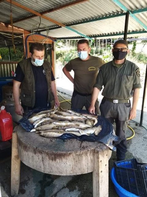 Λίγη ώρα αργότερα, σε έλεγχο που έκαναν σε δύο άτομα, κατά την απομάκρυνσή τους από το ποτάμι, διαπιστώθηκε, ότι μετέφεραν δίχτυα συνολικού μήκους 90 μέτρων, που νωρίτερα τα είχαν χρησιμοποιήσει για παράνομη αλιεία στον ποταμό. Στα δίχτυα βρέθηκαν μεγάλες ποσότητες αλιευμάτων από το ποτάμι, κυρίως πέστροφες διαφόρων ηλικιών, αλλά και άλλα είδη της ιχθυοπανίδας.