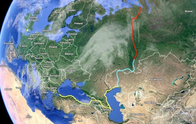 Ωστόσο, η δυσκολότερη στιγμή με τις αρχές δεν άργησε να έρθει. Αφού σταμάτησαν καγιάκ και ξεκίνησαν την ποδηλασία για το τελευταίο μέρος του ταξιδιού, το ζευγάρι βρέθηκε στη Γεωργία, διασχίζοντας ένα ποτάμι για να αποφύγει ένα οδόφραγμα με την πεποίθηση ότι θα εξοικονομούσε χρόνο από το ταξίδι τους. Στην πραγματικότητα, το ζευγάρι είχε παρασυρθεί χωρίς να το καταλάβει στη Νότια Οσετία, μια πρόσφατα δηλωμένη περιοχή της Ρωσίας, που πάρθηκε το 2008 στον πόλεμο με τη Γεωργία.