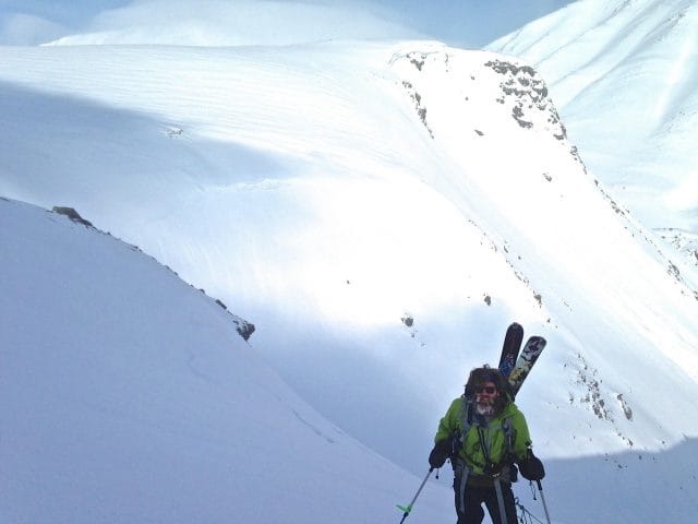“Αρχικά σέρναμε πολύ βαριά έλκηθρα σε πλαγιά 60 μοιρών “, λέει η Callie. “Εάν δεν ξέρεις τι σημαίνει αυτό, ανεβαίνεις κάθετα; όταν κλωτσάς τα πόδια σου στο χιόνι, τα γόνατά σου αγγίζουν την πλαγιά. Ήμασταν και οι δυο φοβισμένοι γιατί δεν είχαμε κανένα προστατευτικό εξοπλισμό για μια τέτοια απότομη ανάβαση. Χρειάζεσαι πραγματικά ένα τσεκούρι για αυτό το είδος κλίσης, και ένας τραυματισμός έξω στη μέση του πουθενά θα ήταν εφιάλτης για τον συνεργάτη σου που θα έπρεπε να βοηθήσει. “