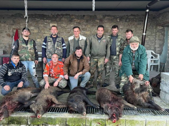 Η λεία από το κυνήγι τους ήταν πέντε μεγάλα αγριογούρουνα.