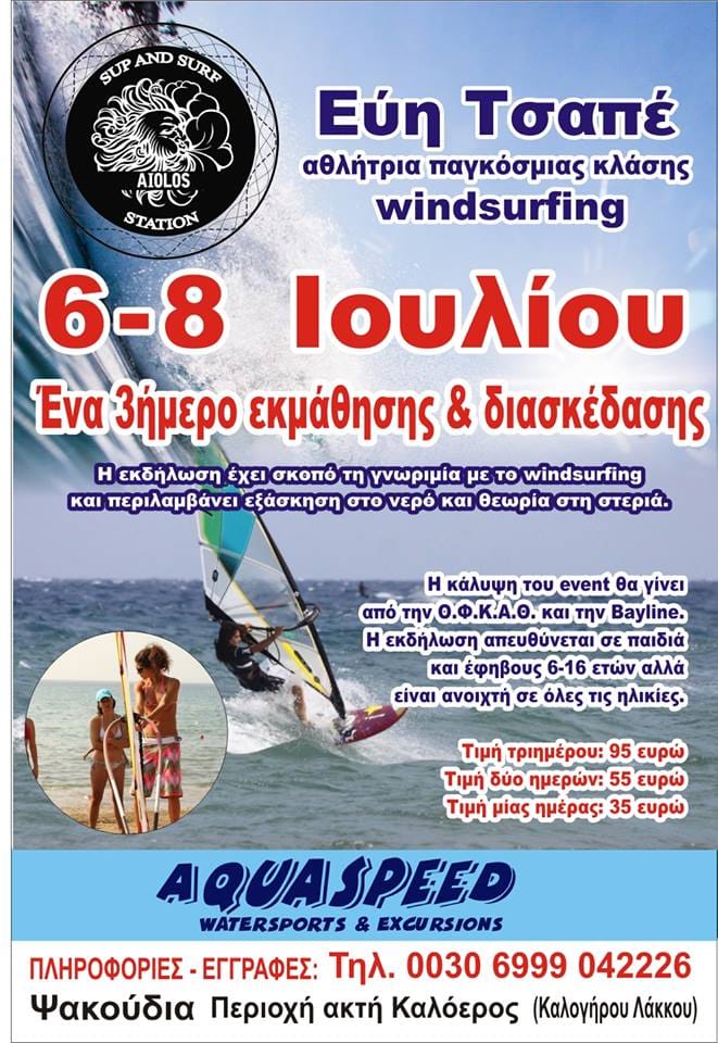 Στις 6-8 Ιουλίου διοργανώνεται σεμινάριο εκμάθησης και παράλληλα διασκέδασης με σκοπό την γνωριμία με το windsurfing.