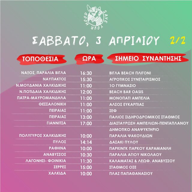Μπορείτε να ενημερώνεστε για τις δράσεις στην πόλη και την περιοχή σας από το Save Your Hood & το Save Your Hood Thessaloniki στο Facebook.