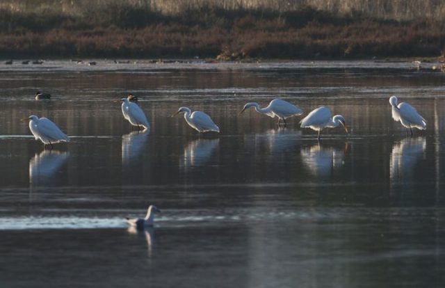 Στο νότιο τμήμα του υγροτόπου υπάρχει ένας μεγάλος αλμυρόβαλτος γεμάτος με φυτά τους είδους Salicornia, ενώ προς την ηπειρωτική περιοχή υπάρχουν καλαμιές και βούρλα. Στην μικρή έκταση που χωρίζει την θάλασσα από την οικιστική περιοχή, ανάμεσα στις σαλικόρνιες φυτρώνει ένα ιδιαίτερα σπάνιο λουλούδι, το κολχικό Colchicum soboliferum, το οποίο ανθίζει σε μικρούς πληθυσμούς στο τέλος του χειμώνα. Άλλα σημαντικά είδη της περιοχής είναι το Aster tripolium, το Cakile maritima, η Dittrichia viscosa, ο Carduus pycnocephalus, η Matthiola tricuspidata, το Medicago minima και το Ornithogalum divergens.