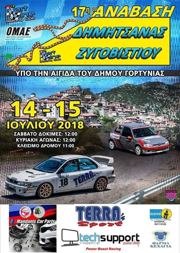 Στις 14 και 15 Ιουλίου 2018 η ορεινή Γορτυνία, η πάντα όμορφη και φιλόξενη Δημητσάνα και το γραφικό Ζυγοβίστι θα υποδεχθούν για 17η συνεχόμενη φορά την ομώνυμη Ανάβαση, 3ο αγώνα του Κυπέλλου Αναβάσεων Ν. Ελλάδος. Μία γιορτή γεμάτη ήχους αγωνιστικών αυτοκινήτων, ένταση από την προετοιμασία τους και τις ομάδες να δίνουν τον καλύτερό τους εαυτό για ένα εντυπωσιακό αγωνιστικό αποτέλεσμα.