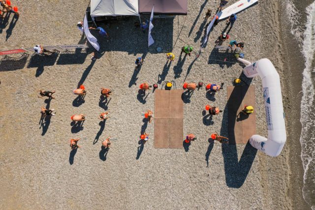 Εναέρια λήψη των αποστάσεων που τηρήθηκαν στις εκκινήσεις των κολυμβητών την περσινή χρονιά (photo by Dimitris