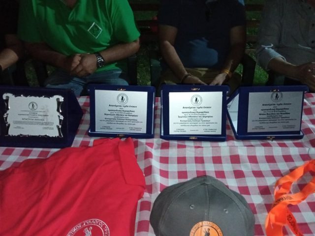 Παράλληλα, του παραδώθηκε και ιματισμό με το σήμα του Συλλόγου, ευχαριστώντας τον για την τιμή που έκανε να αγωνίζεται με το σύμβολο του Συλλόγου στο στήθος του. Ο κ. Τραγάνης στάθηκε στην βράβευση ομοσπονδιακών θηροφυλάκων του Ν. Τρικάλων, υπογραμμίζοντας ότι «παλεύουνε μακροχρόνια και δίνουν τον καλύτερο εαυτό τους, νυχθημερόν για την προστασία της χλωρίδας και της πανίδας του τόπου μας. Θεωρούμε ότι ανθρώπινες αξίες που αναδεικνύονται μέσα από τις δράσεις τους πρέπει να τις τιμάμε».